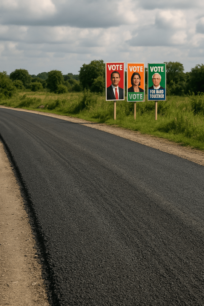 And now, in 2025, the long‑suffering Edinborough/Ottley Hall Road ignored for years despite heavy use has suddenly become a priority. Asphalt, trucks, men in high‑visibility vests and camera crews all just in time for an election calendar.